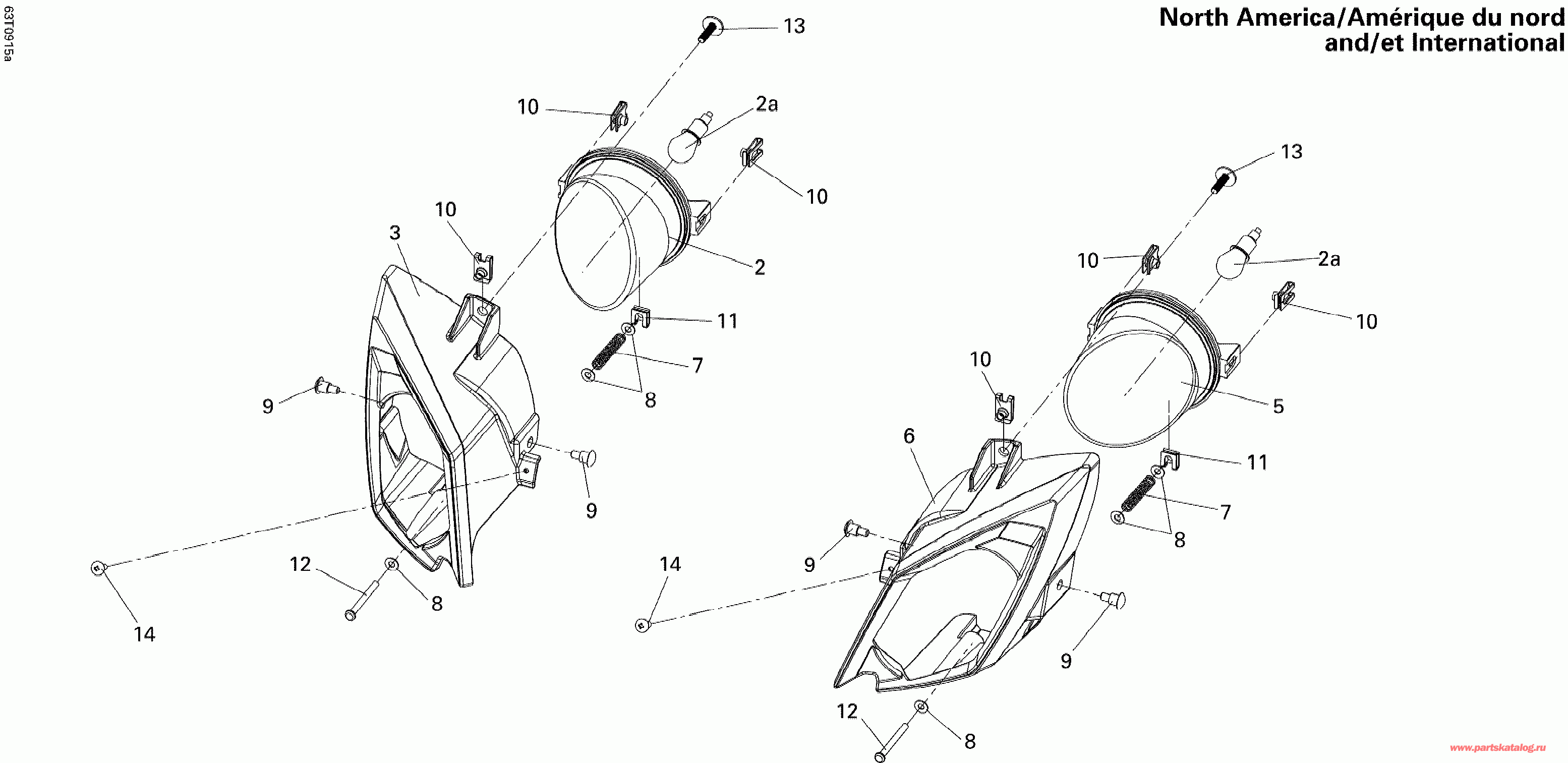 вернуться к списку узлов и деталей ДЕТАЛИРОВКА ДЛЯ МОДЕЛИ: BRP ATV DS 250 NA & INT, 2015 Раздел: Прожектор America, International