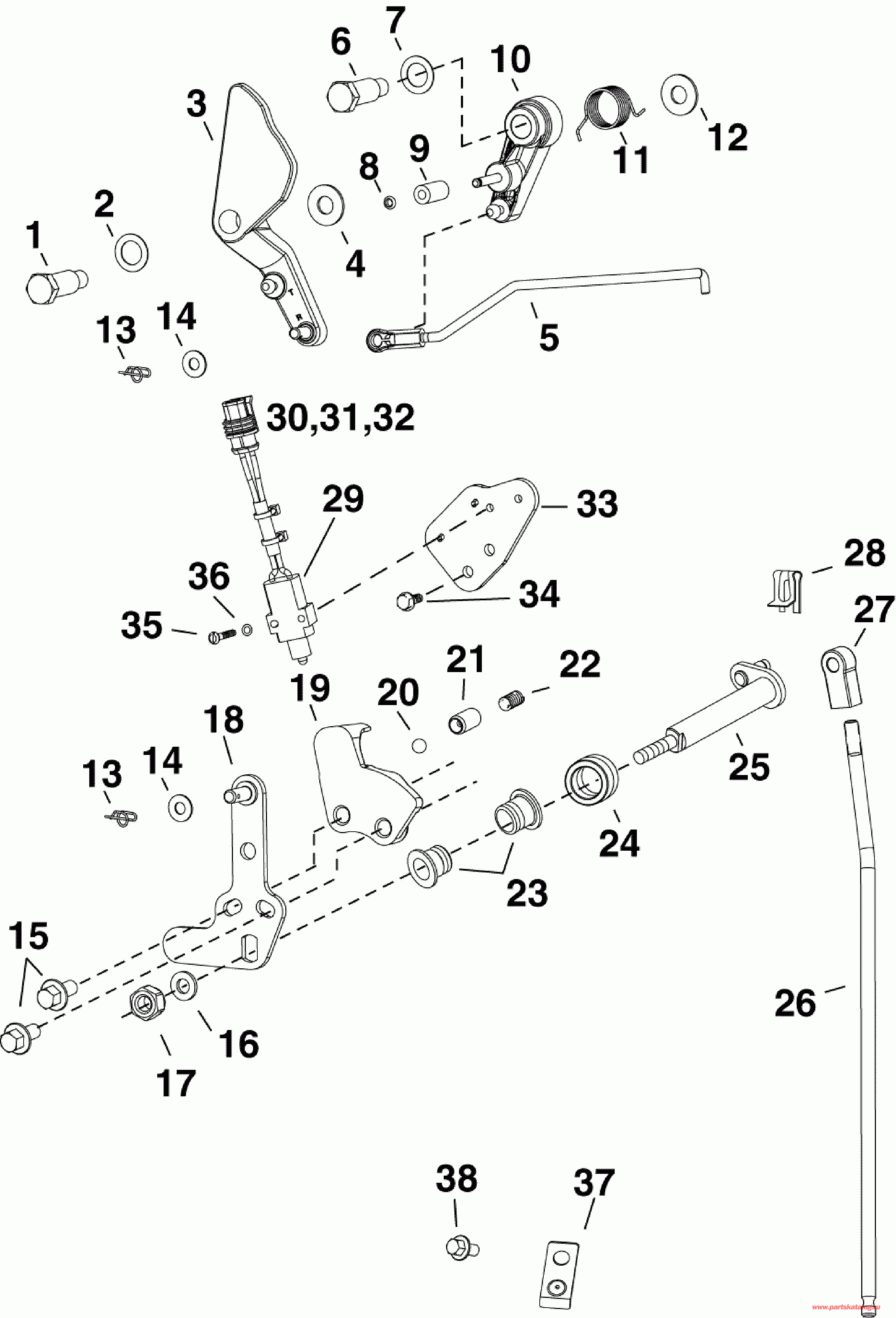 Мотор EVINRUDE E25TESLIIH  - rottle & Shift Linkage