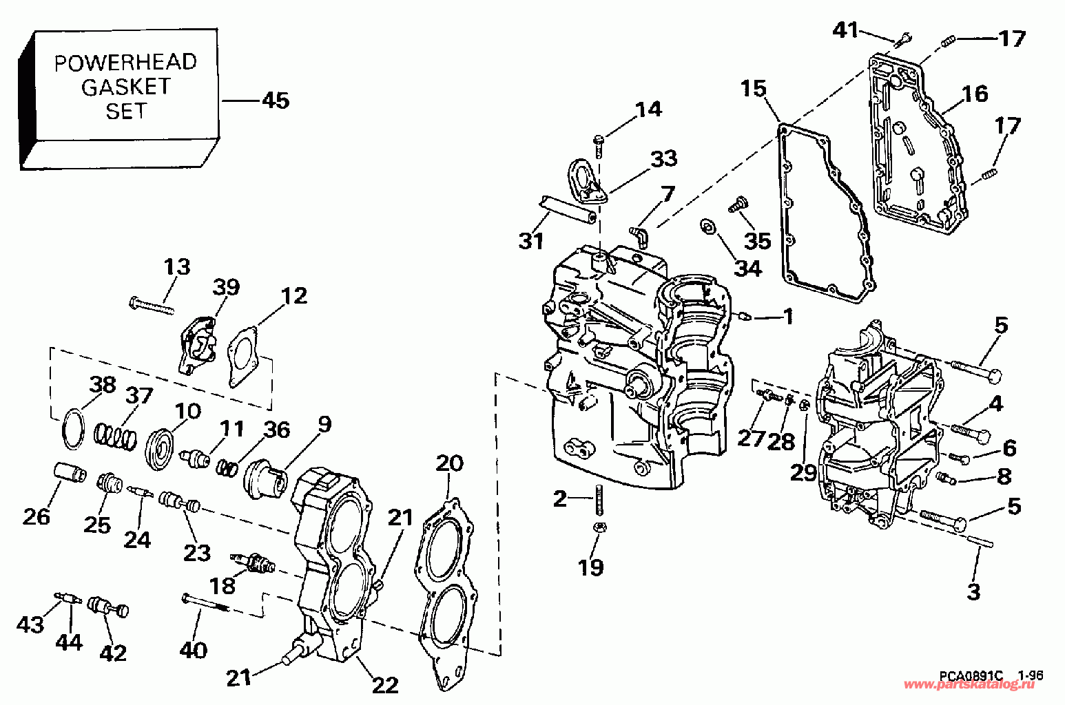 Эвинруд BE50RLEUC 1997  - linder & Картер двигателя - linder & Crankcase