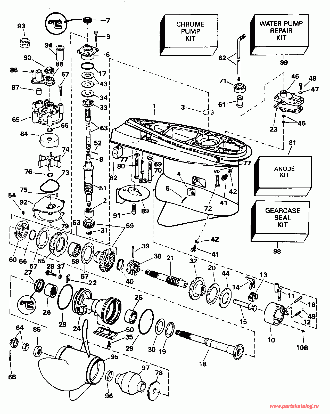 Гребной винт. Refer to OMC SysteMatched Parts & Аксессуары Catalog для Гребной винт Charts. (PROPELLER. Refer to OMC SysteMatched Parts & Accessories Catalog for Propeller Charts.)