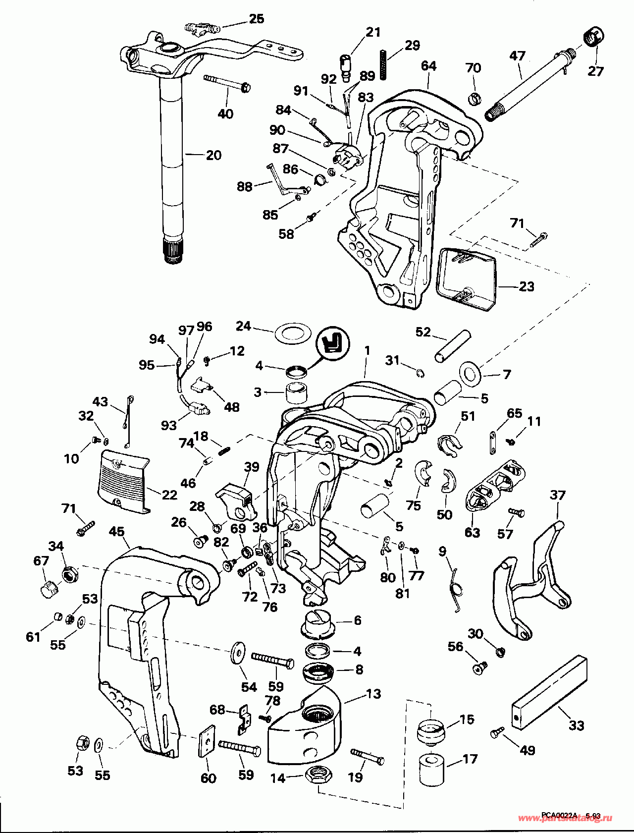 Поворотный кронштейн. 20 дюйм (508 мм) Transom Models ME, MJ Model Prefix Only (SWIVEL BRACKET. 20 in. (508mm) Transom Models ME, MJ Model Prefix Only)