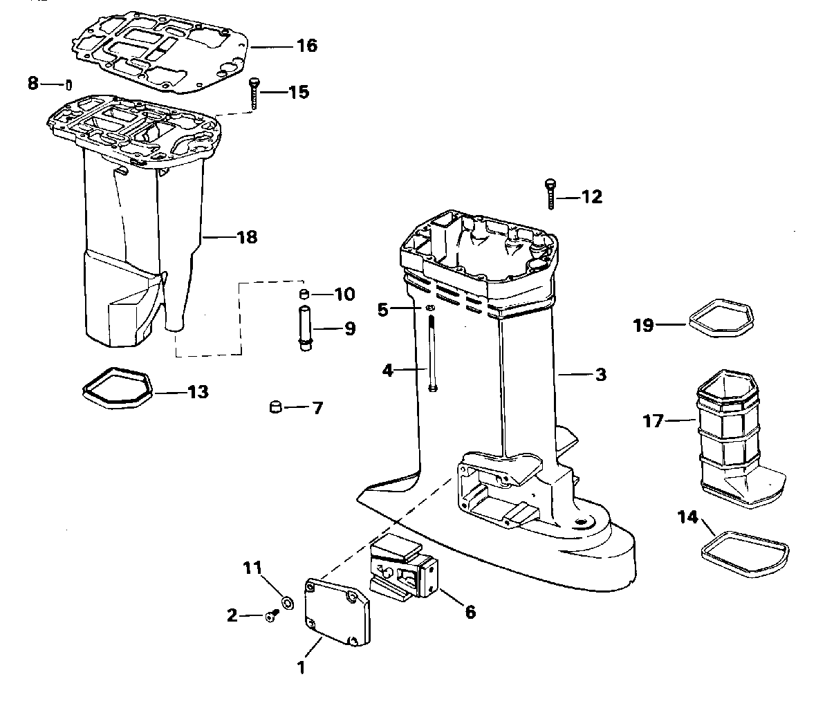 | 3 | 0340824 | Удлинитель корпуса, Outer. 20 дюйм (508 мм) transom models only (EXHAUST HOUSING, Outer. 20 in. (508mm) transom models only) | нет в наличии, поставок нет |