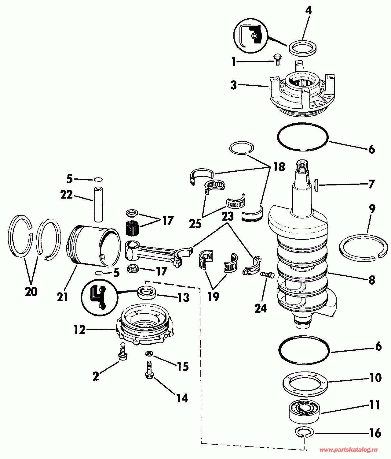 Подвесной мотор Эвинруд E115TXESB 1990  - ankВал & Поршень - ankshaft & Piston