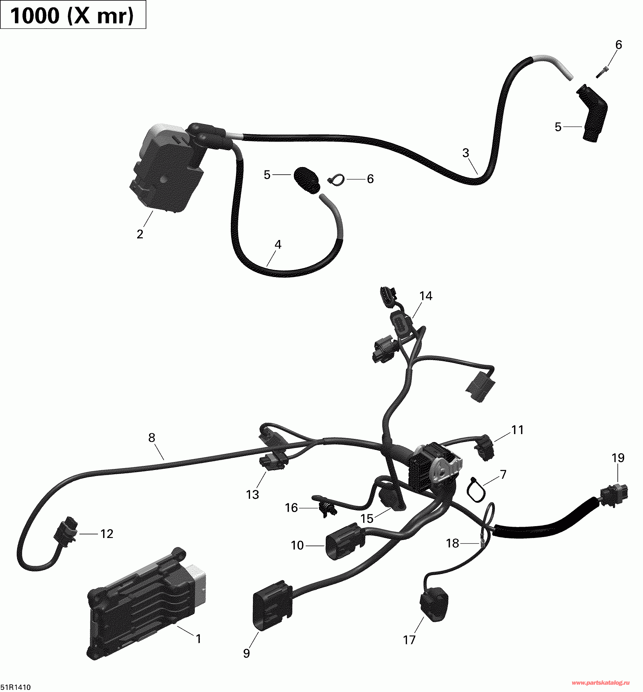 вернуться к списку узлов и деталей ДЕТАЛИРОВКА ДЛЯ МОДЕЛИ: BRP ATV Outlander 1000EFI XMR, 2014 Раздел: Двигатель Жгут проводов и Electronic Module