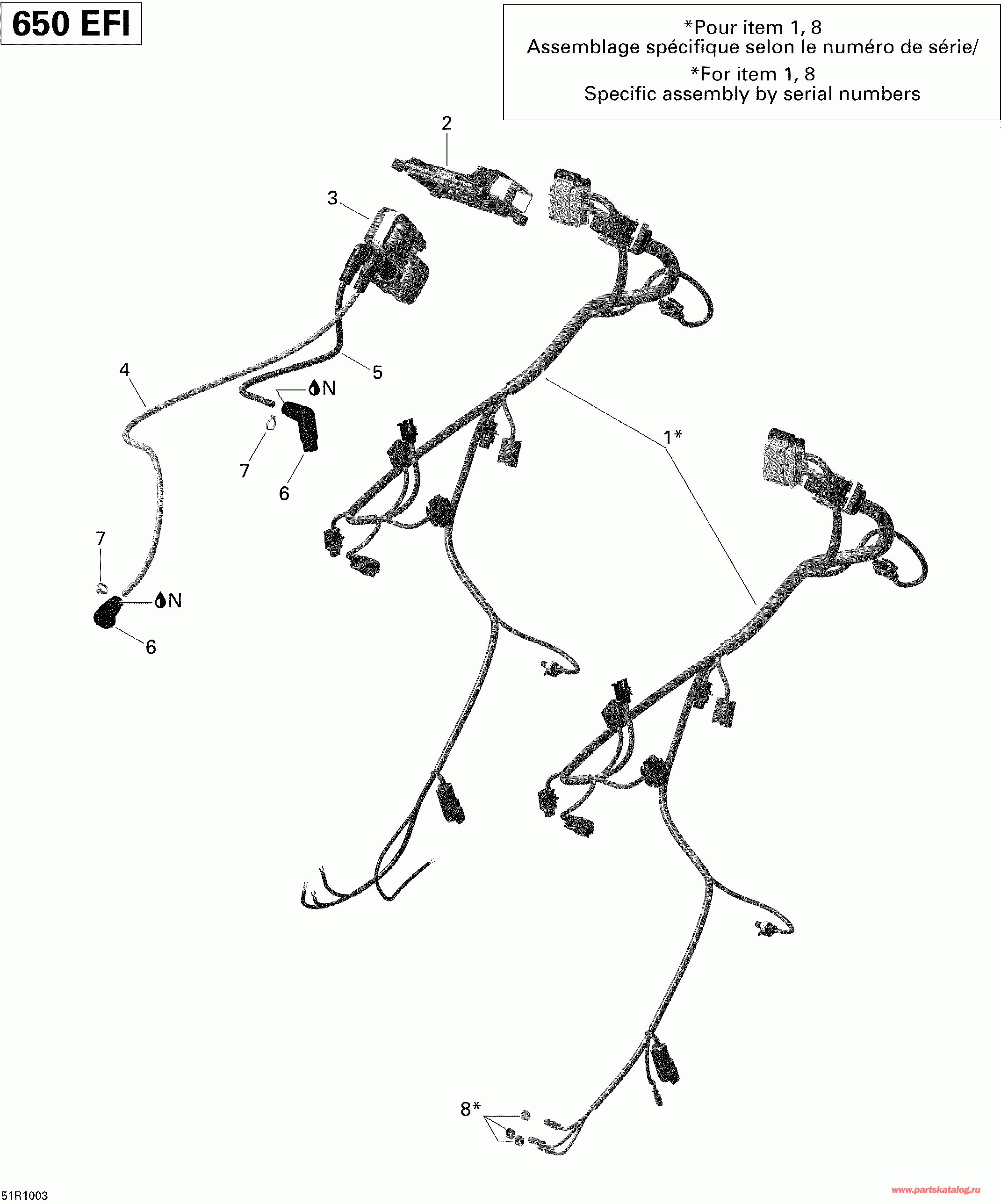 вернуться к списку узлов и деталей ДЕТАЛИРОВКА ДЛЯ МОДЕЛИ: BRP ATV Outlander 650 EFI, 2010 Раздел: Двигатель Жгут проводов и Electronic Module