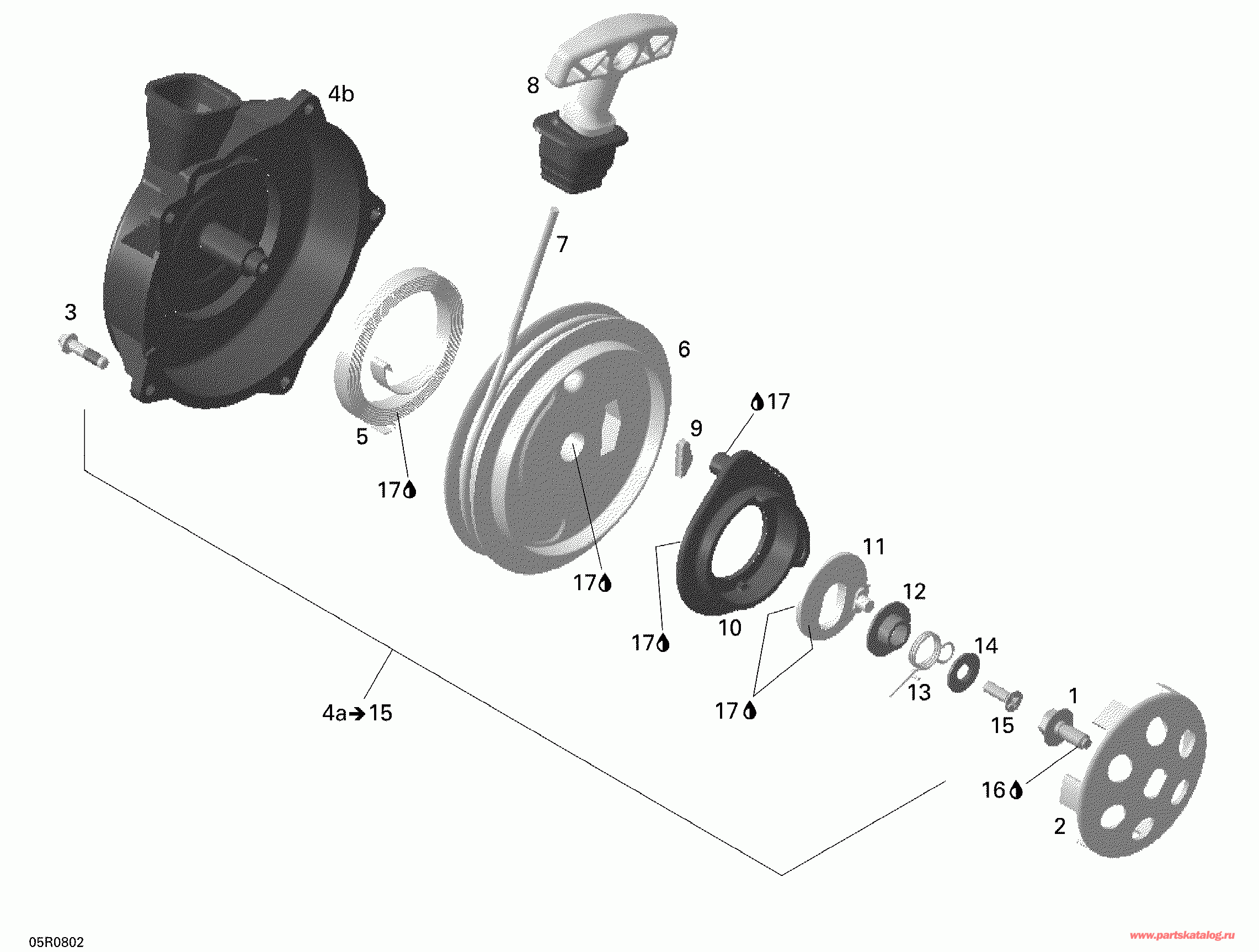 (последний код) Rewind Стартер в сборе. Includes 4a to 15 (Rewind Starter Assy. Includes 4a to 15)