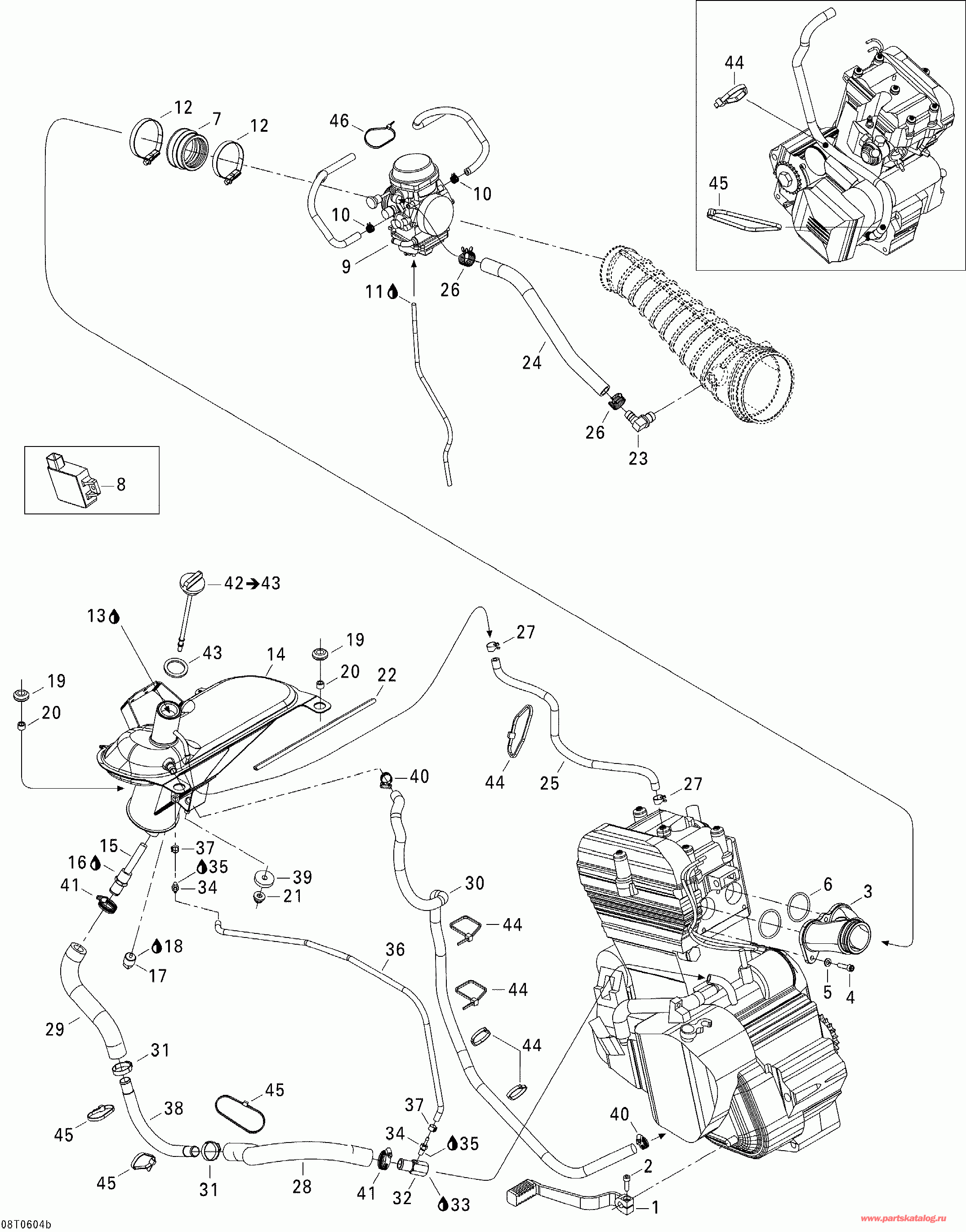 | 42 | 707000047 | Oil Колпачок в сборе Includes 42 to 43 (Oil Cap Assy. Includes 42 to 43) | под заказ | 2010 руб. | |