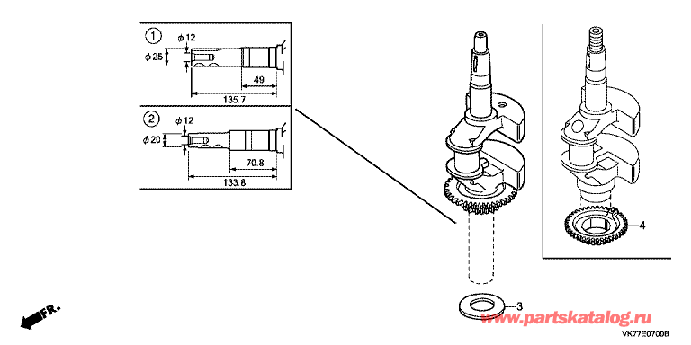 Техника: газонокосилка HRX426 Модификация: Honda HRX426C PDE Установлен двигатель: Honda GCV160E MU2 Модели с серийным номером двигателя GJAAE от 1000001 до 9999999 Модели с серийным номером рамы MATF от 1000001 до 1999999 Вернуться к выбору узлов мотора ДЕТАЛИРОВКА ДЛЯ МОДЕЛИ: HONDA HRX426C PDEE-07 Коленвал (E-07 Crankshaft) ![]()