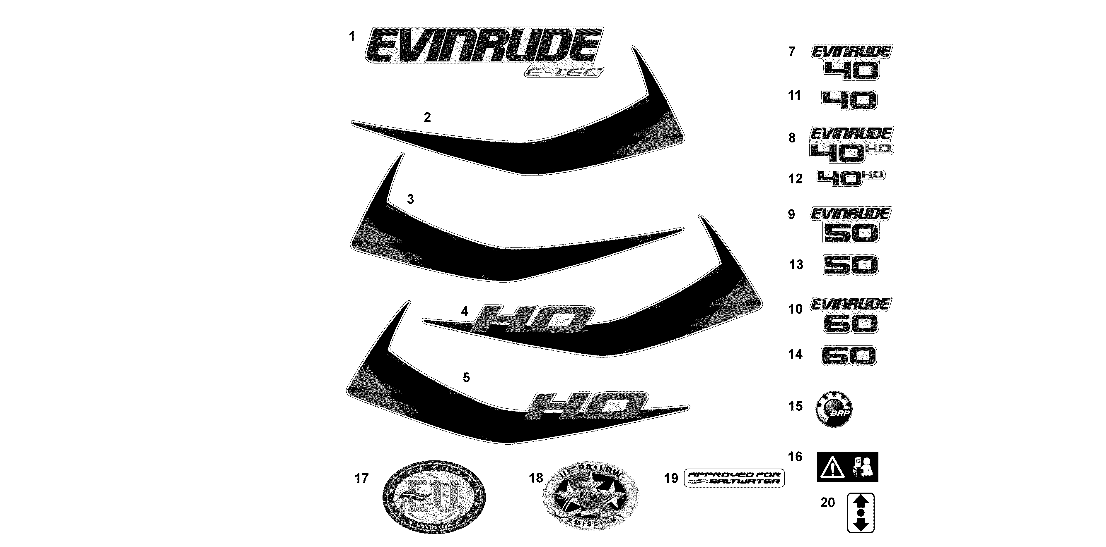 Двигатель Эвинруд E40DPLAFA  - Наклейки / decals
