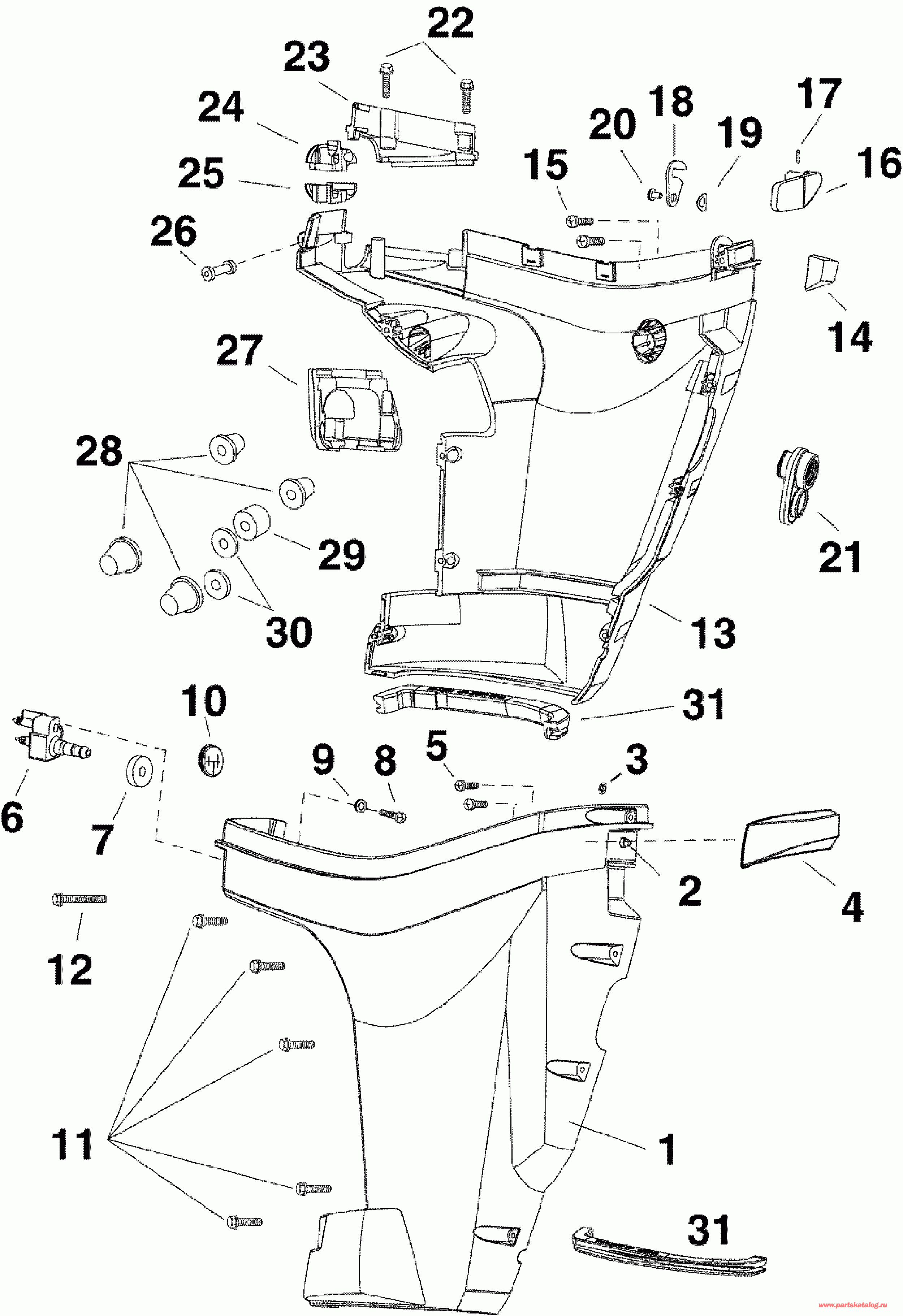 Нижняя часть корпуса Assembly, Starboard. белый Models (LOWER COVER Assembly, Starboard. White Models)