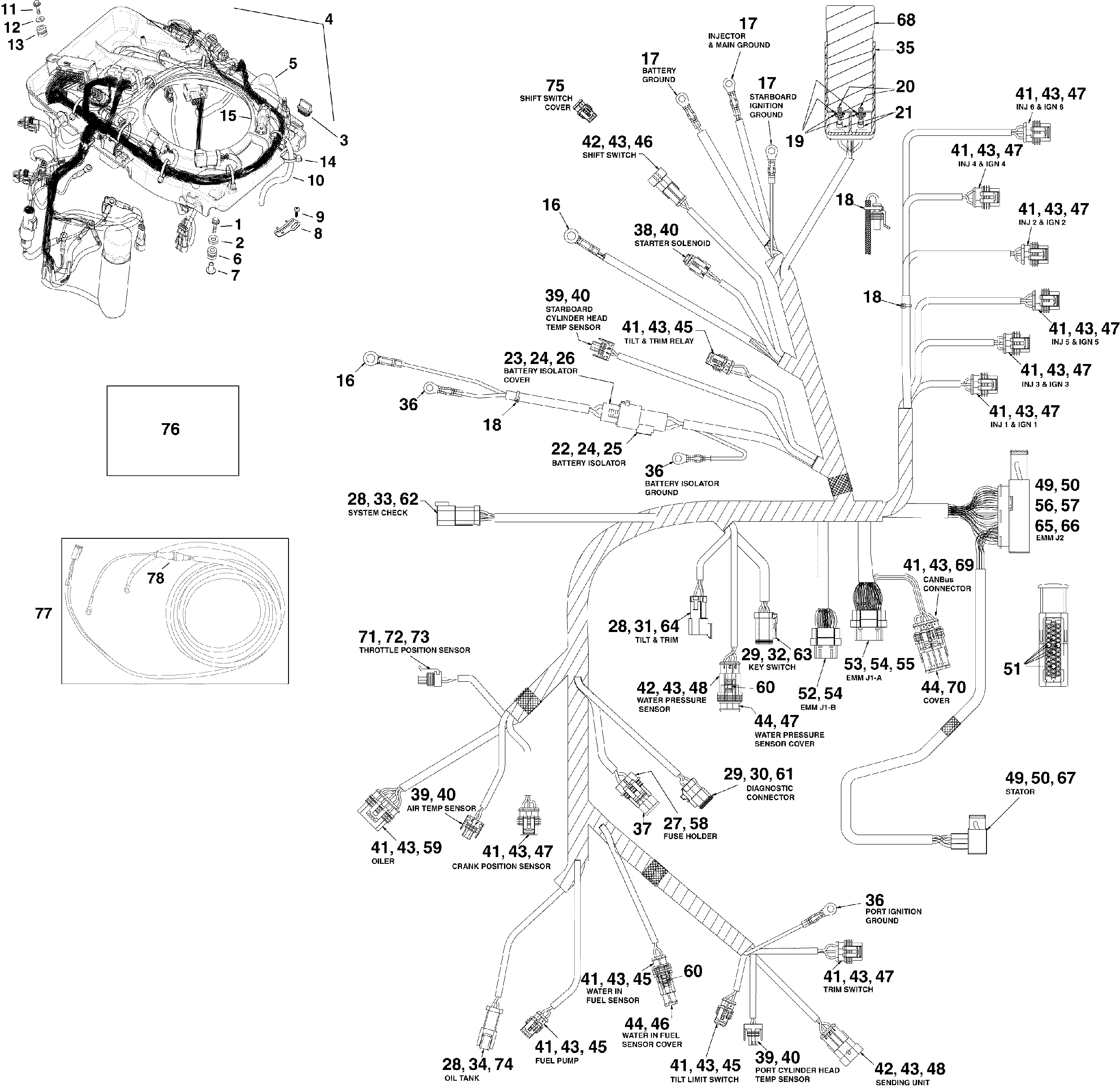 Лодочный мотор Эвинруд E200DSLSCA  - ectrical Жгут проводов / ectrical Harness