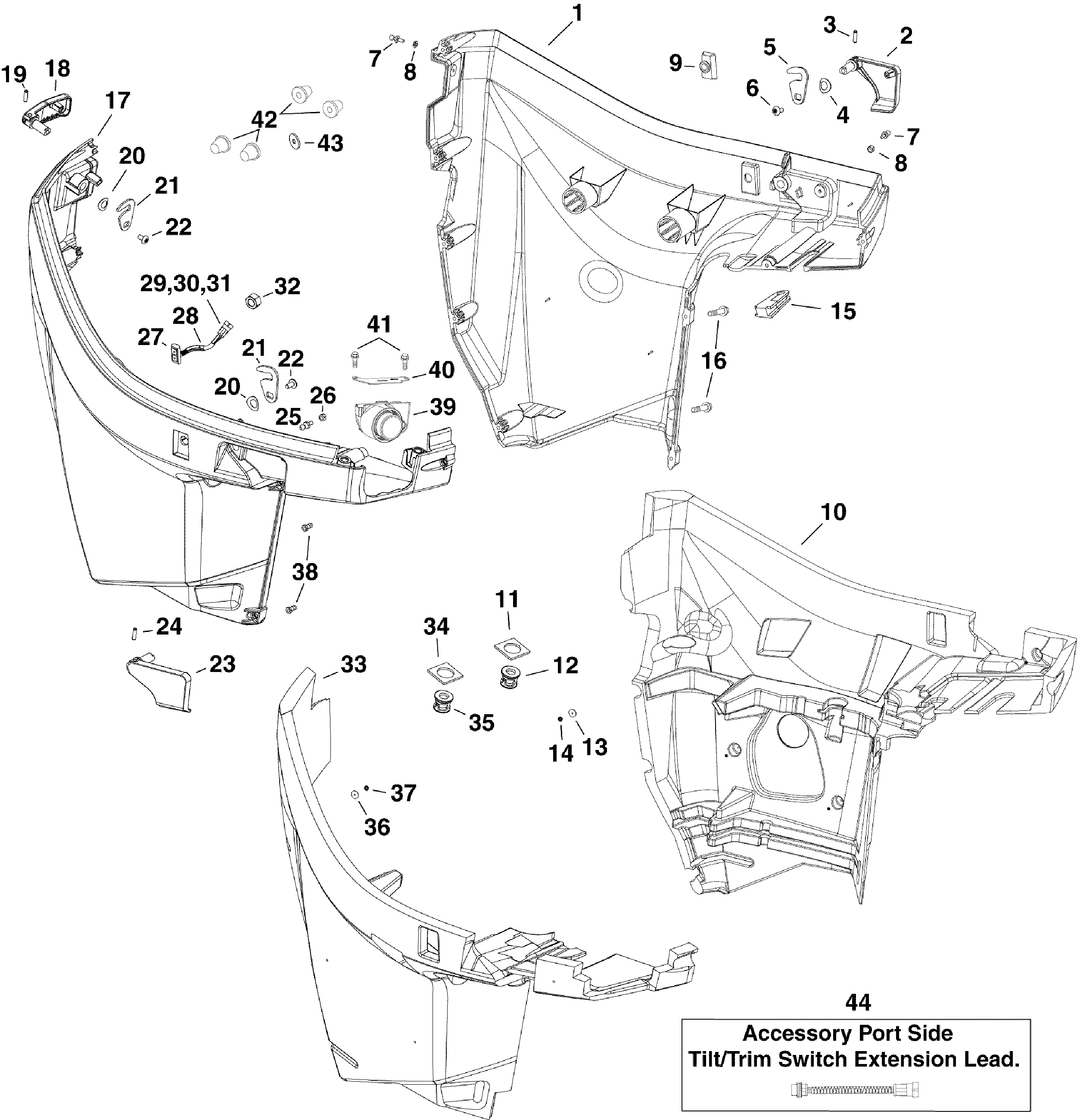 Нижняя часть корпуса в сборе., Starboard "белый" (LOWER COVER Assy., Starboard "WHITE")