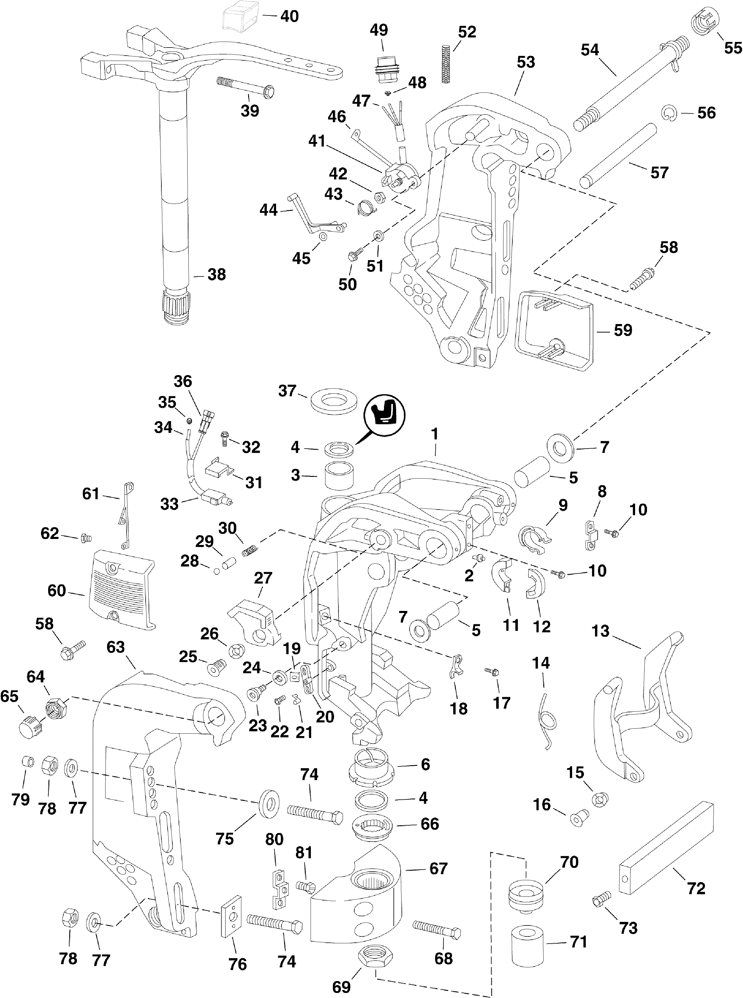Крышка, Кронштейн транца, Starboard (COVER, Stern bracket, Starboard)