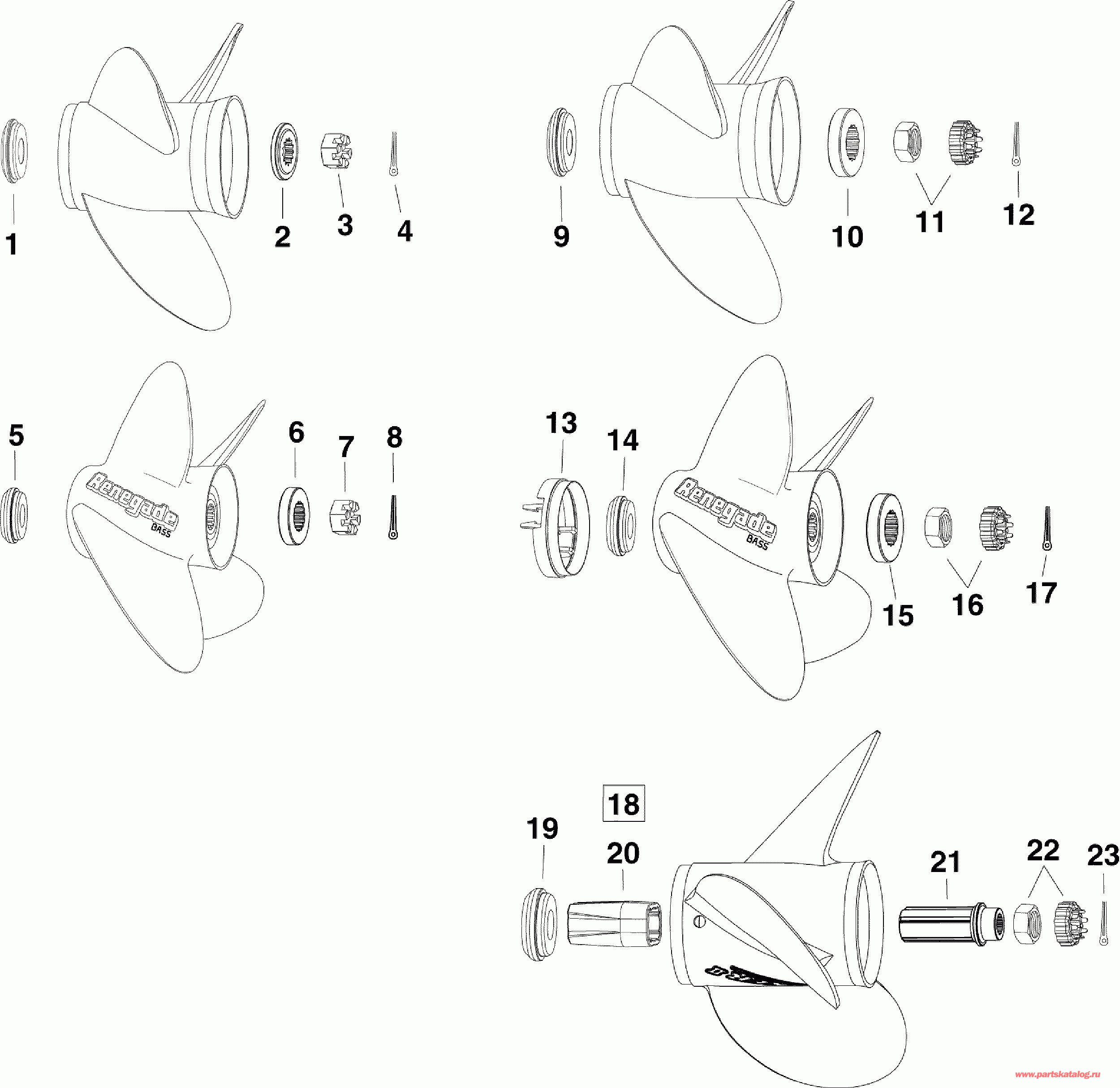 Гайка & KEEPER, Гребной винт. X Models -Renegade Bass Гребной винтs (NUT & KEEPER, Propeller. X Models -Renegade Bass Propellers)