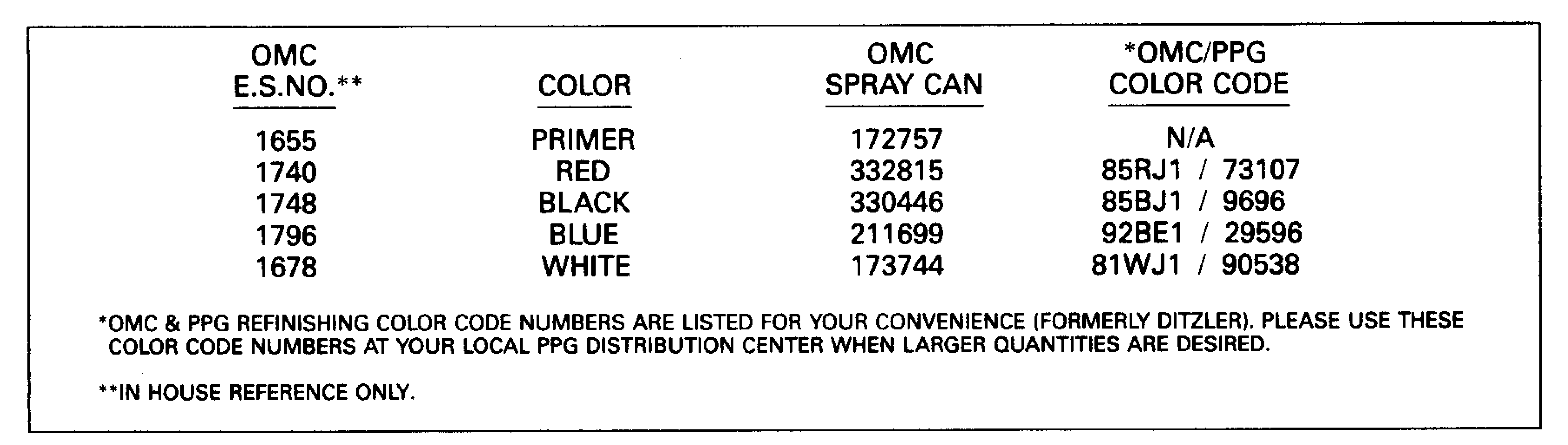 Все разделы каталога запчастей на этот двигатель вернуться к списку узлов и деталей ДЕТАЛИРОВКА ДЛЯ МОДЕЛИ: EVINRUDE E6RLENM 1992 КРАСКА CHART | PAINT CHART; ![]()
