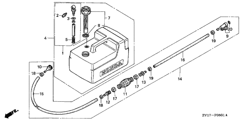 Модификация Вашего двигателя: Honda BF5A2 LD Вернуться к выбору узлов мотора Топливный бак (пластиковый) |