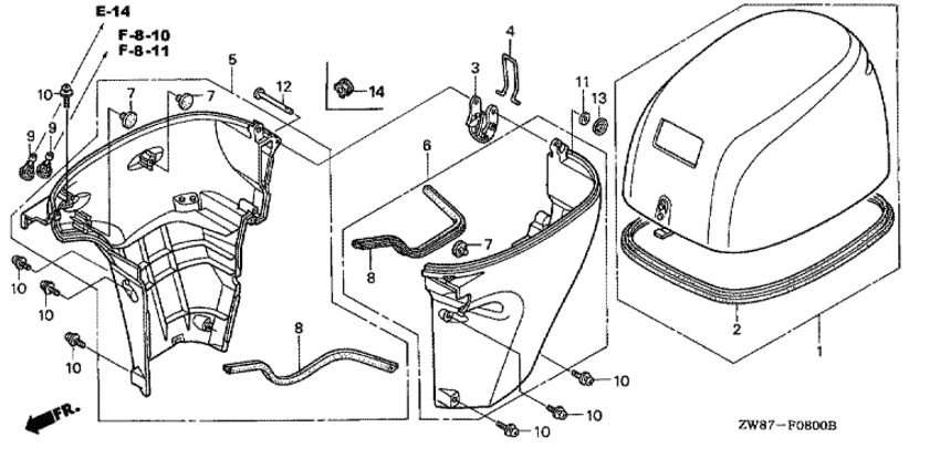 | 8 | 63719-ZW9-000 | Сальник снизу корпуса двигателя (Seal, under cover) | под заказ | 1420 руб. | |