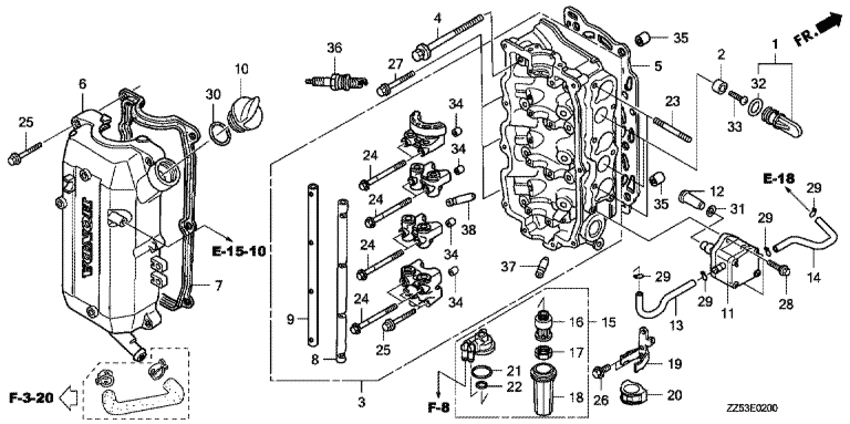 Модификация Вашего двигателя: Honda BF50D EFI; LRTD Вернуться к выбору узлов мотора Головка блока цилиндра |