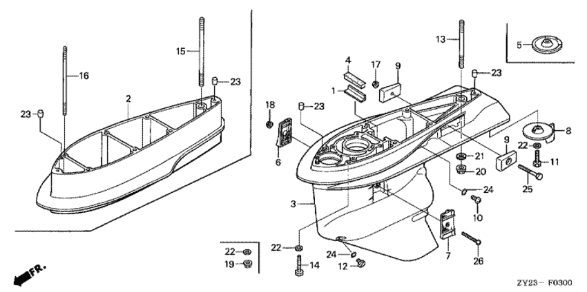 Модификация Вашего двигателя: Honda BF200A2 XCD Вернуться к выбору узлов мотора Картер коробки передач |