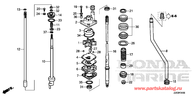 Модификация Вашего двигателя: Honda BF100A LRTU Вернуться к выбору узлов мотора F-04 Водяной насос / Вертикальный вал |