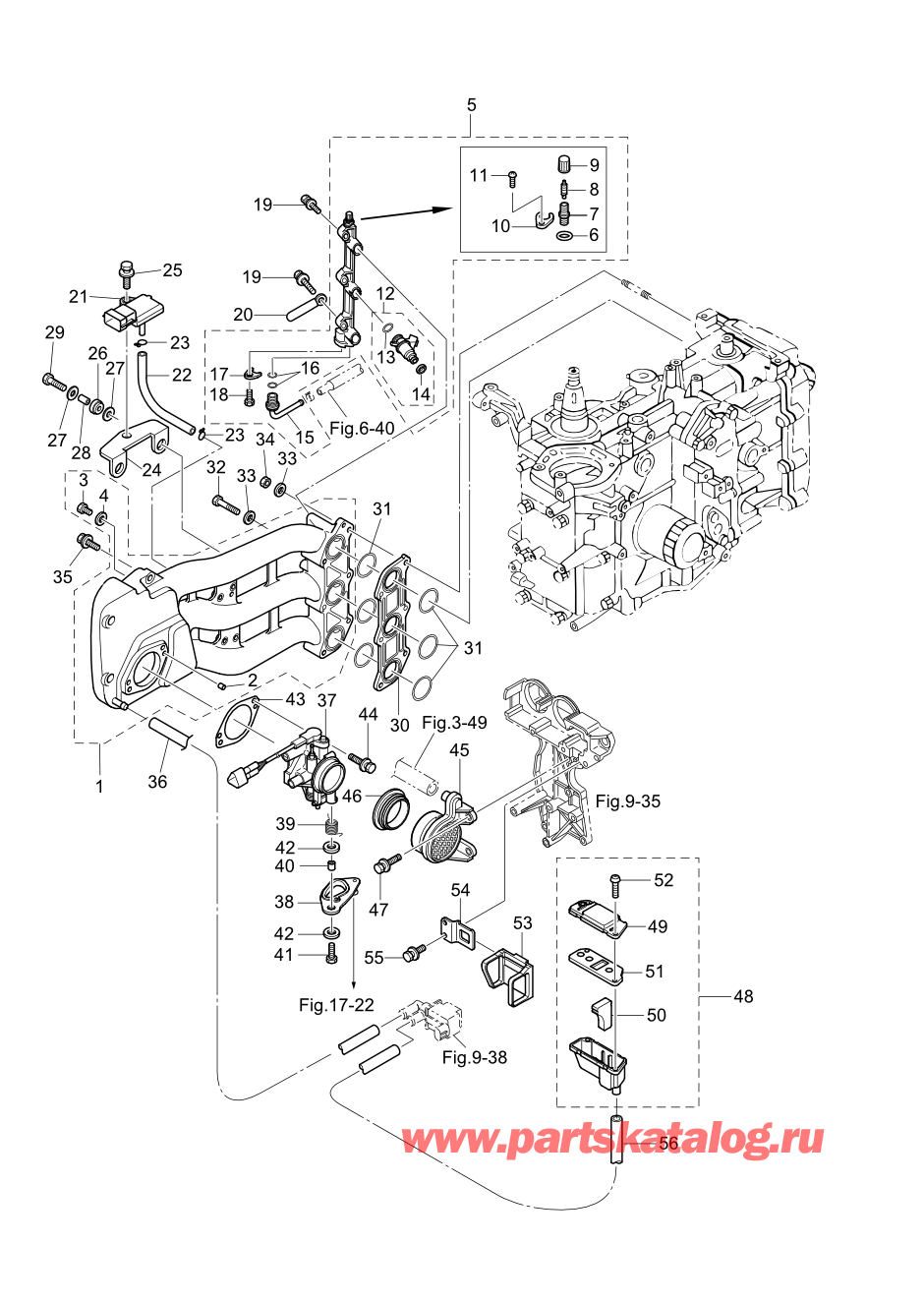 | 5-48 | 3AC-02409-0 | Впуск глушителя в сборе (Intake Silencer Assy) ISC Valve / Клапан холостого хода | 1 | под заказ | 3290 руб. | |