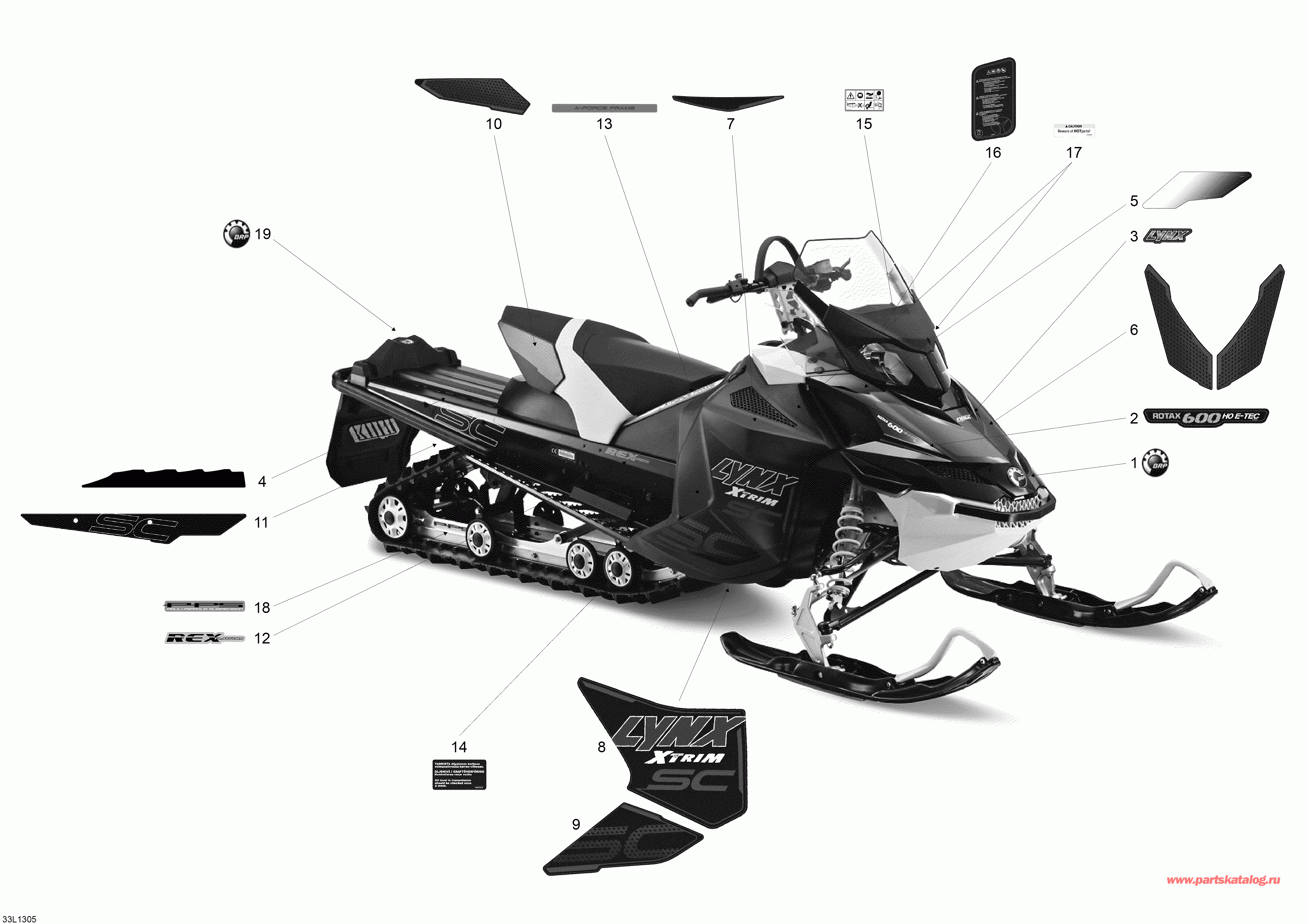 вернуться к списку узлов и деталей ДЕТАЛИРОВКА ДЛЯ МОДЕЛИ: LYNX Xtrim SC 600 E-TEC, 2013