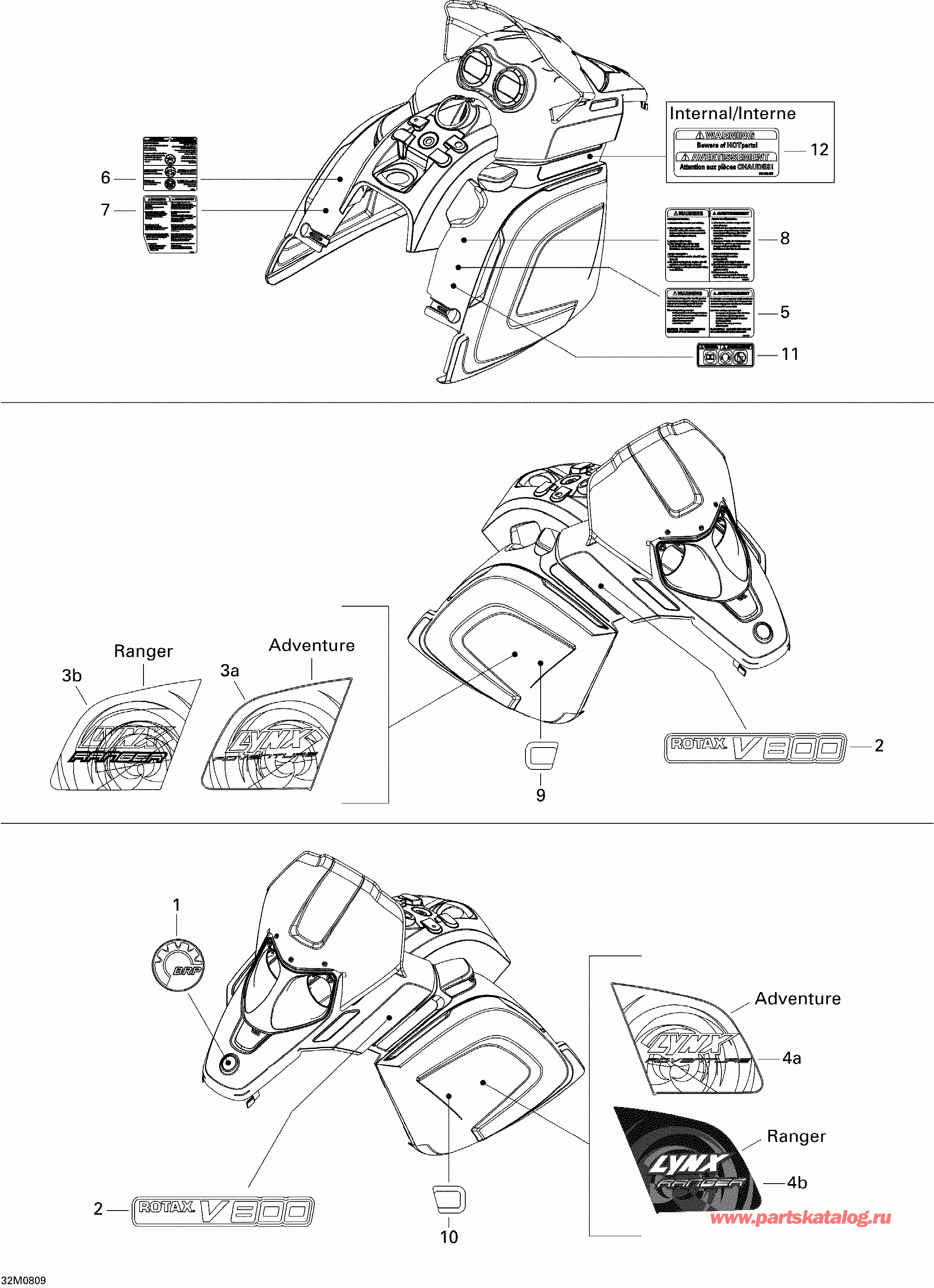 вернуться к списку узлов и деталей ДЕТАЛИРОВКА ДЛЯ МОДЕЛИ: LYNX Adventure V-800, 2008