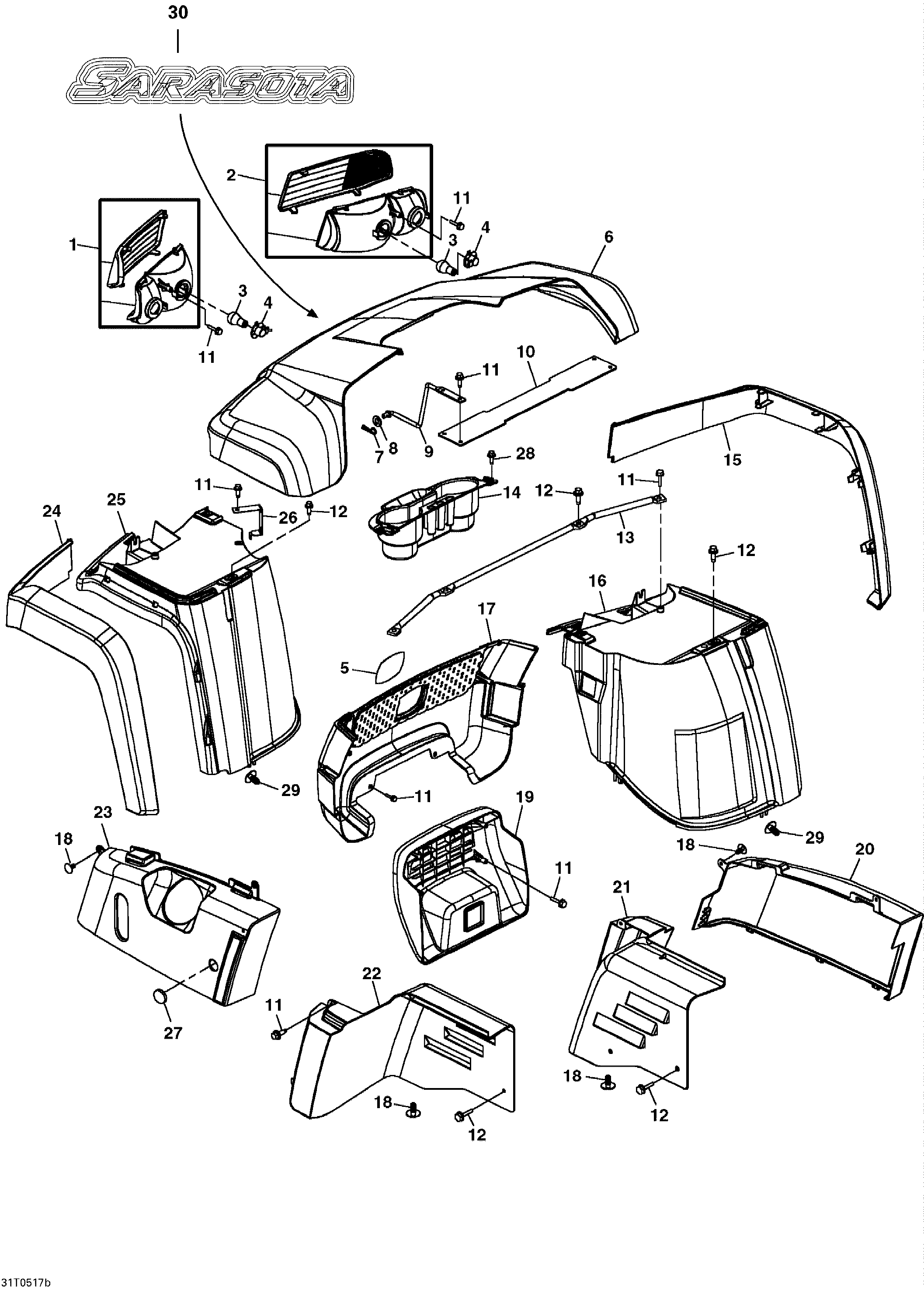 вернуться к списку узлов и деталей ДЕТАЛИРОВКА ДЛЯ МОДЕЛИ: BRP ATV Sarasota 1000, 2005