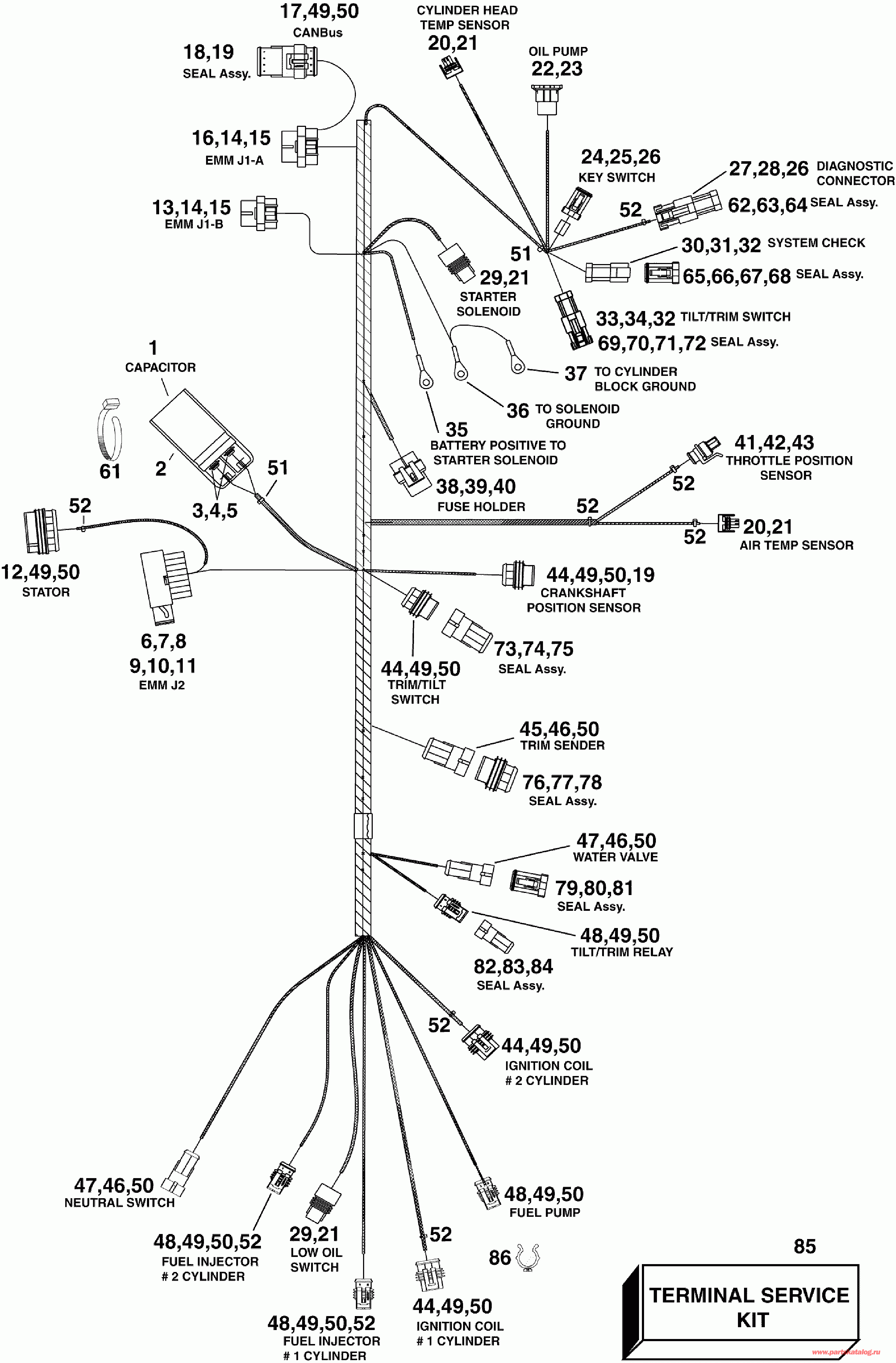 Двигатель EVINRUDE E50DSLISF  - ectrical Harness - ectrical Жгут проводов