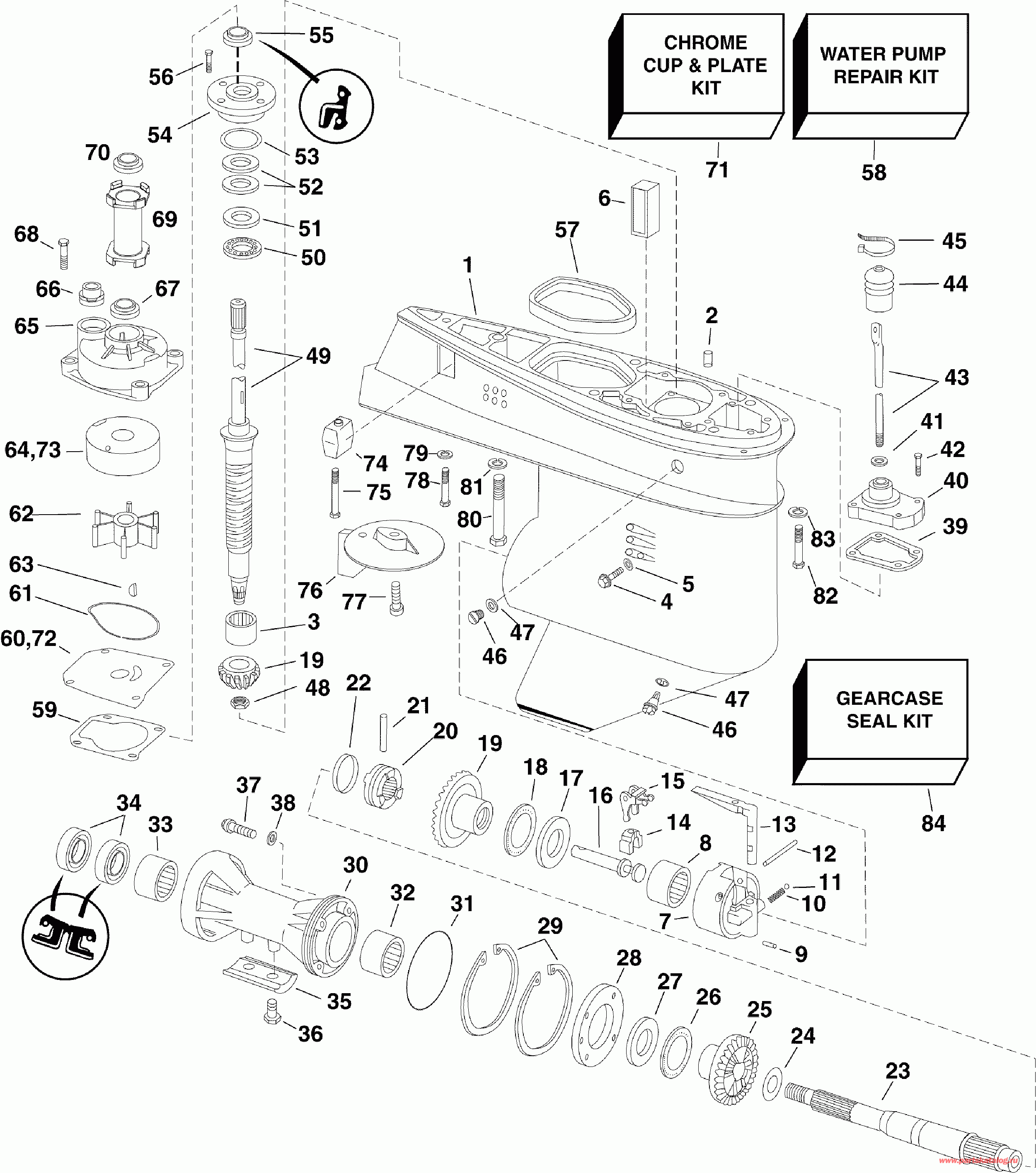 *Уплотнительное кольцо, Подшипник Корпус. Contents of Комплект сальников редуктора (O-RING, Bearing housing. Contents of Gearcase Seal Kit)