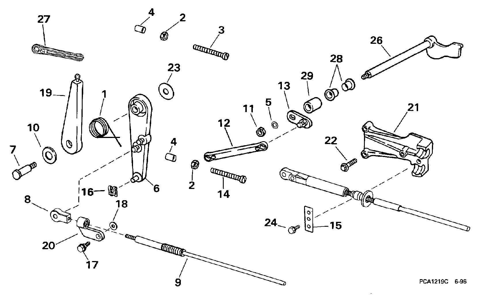 Мотор EVINRUDE BE25QLEUR 1997  - rottle Linkage - rottle Подъемный механизм
