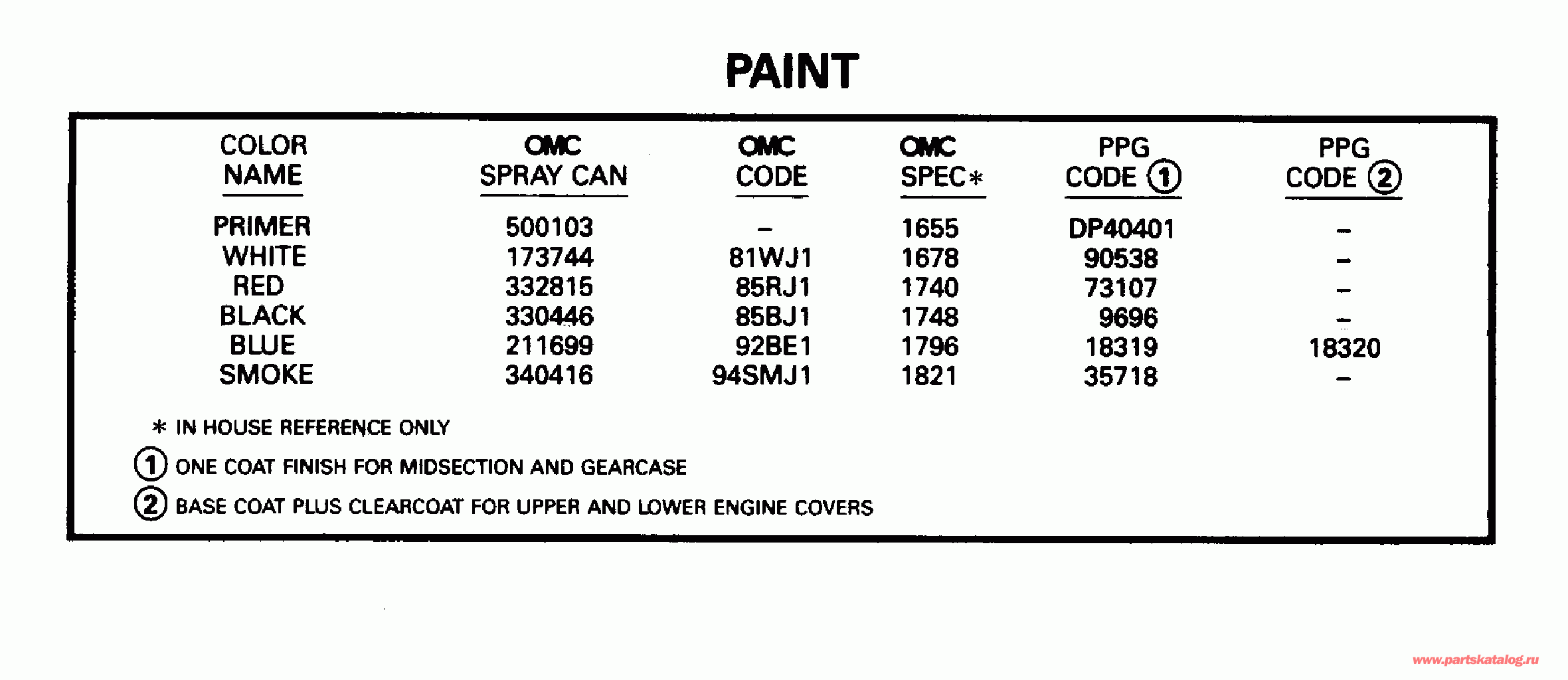 Все разделы каталога запчастей на этот двигатель вернуться к списку узлов и деталей ДЕТАЛИРОВКА ДЛЯ МОДЕЛИ: EVINRUDE E60TTLEDR 1996 КРАСКА | PAINT; ![]()