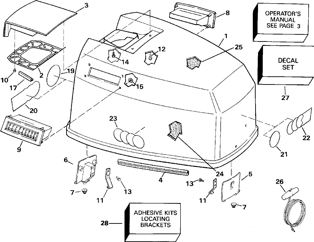 Крышка двигателя (капот) в сборе., Johnson, silver Крышка (ENGINE COVER ASSY., Johnson, silver cover)