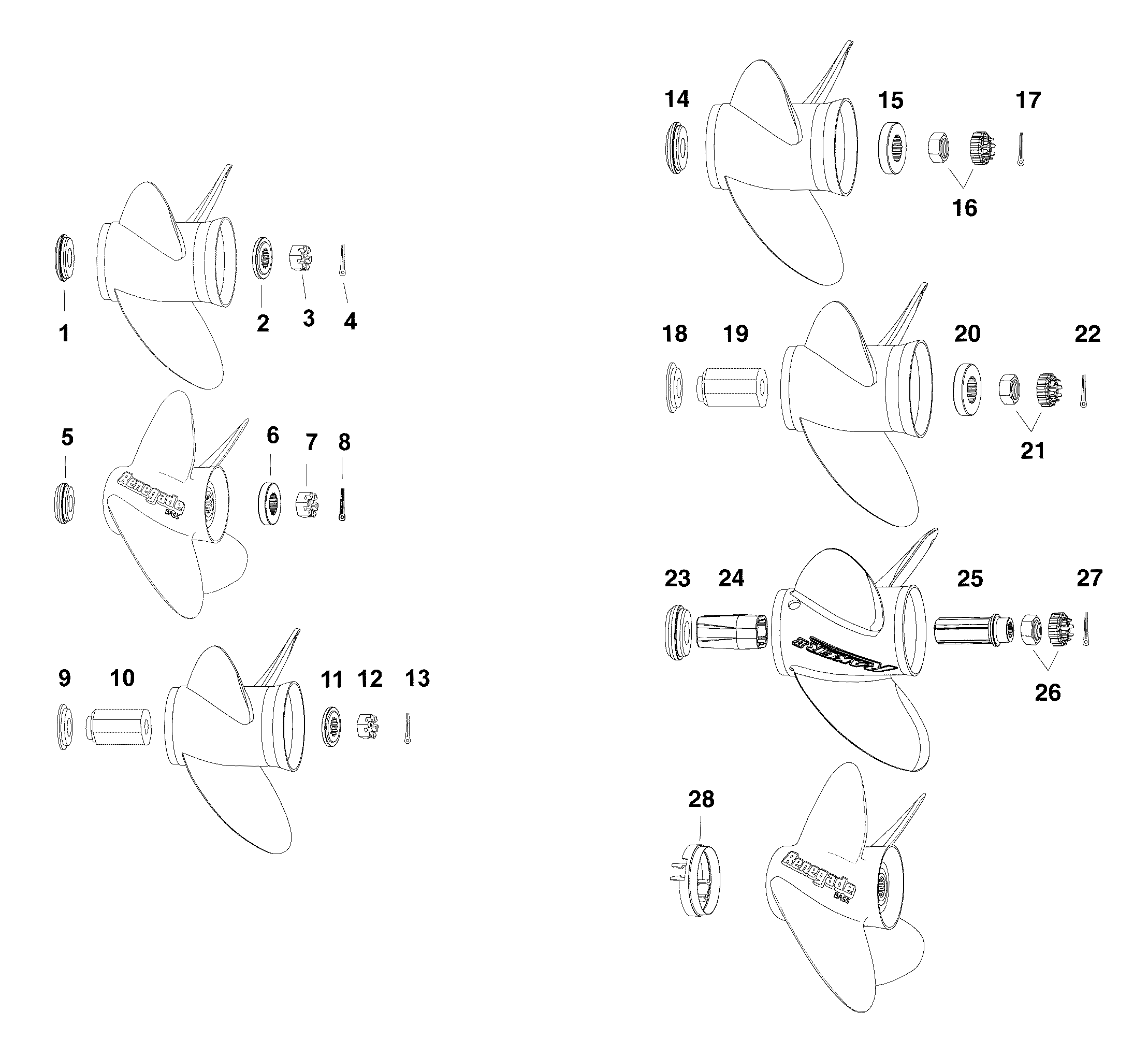 Втулка, Thrust. Renegade® Bass Гребной винтs (BUSHING, Thrust. Renegade® Bass Propellers)