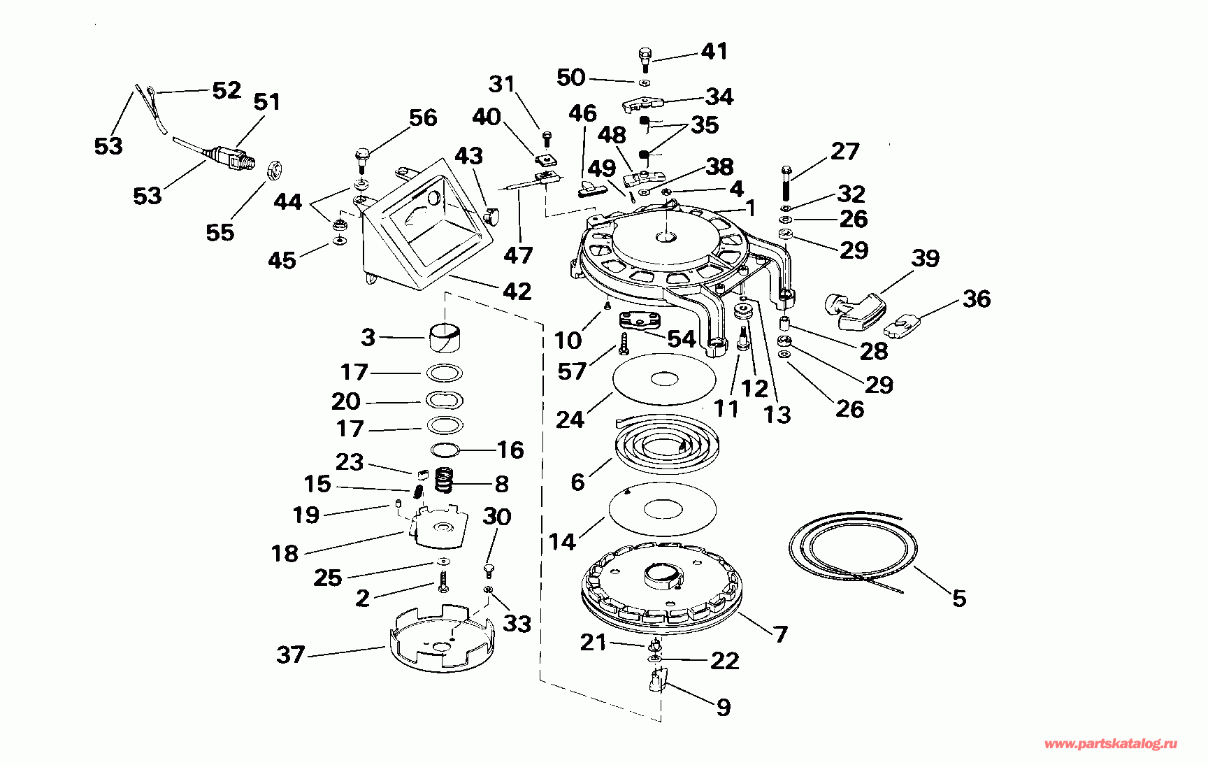 ДЕТАЛИРОВКА ДЛЯ МОДЕЛИ: EVINRUDE E55WRYSSC Commercial, Rope Start, Tiller