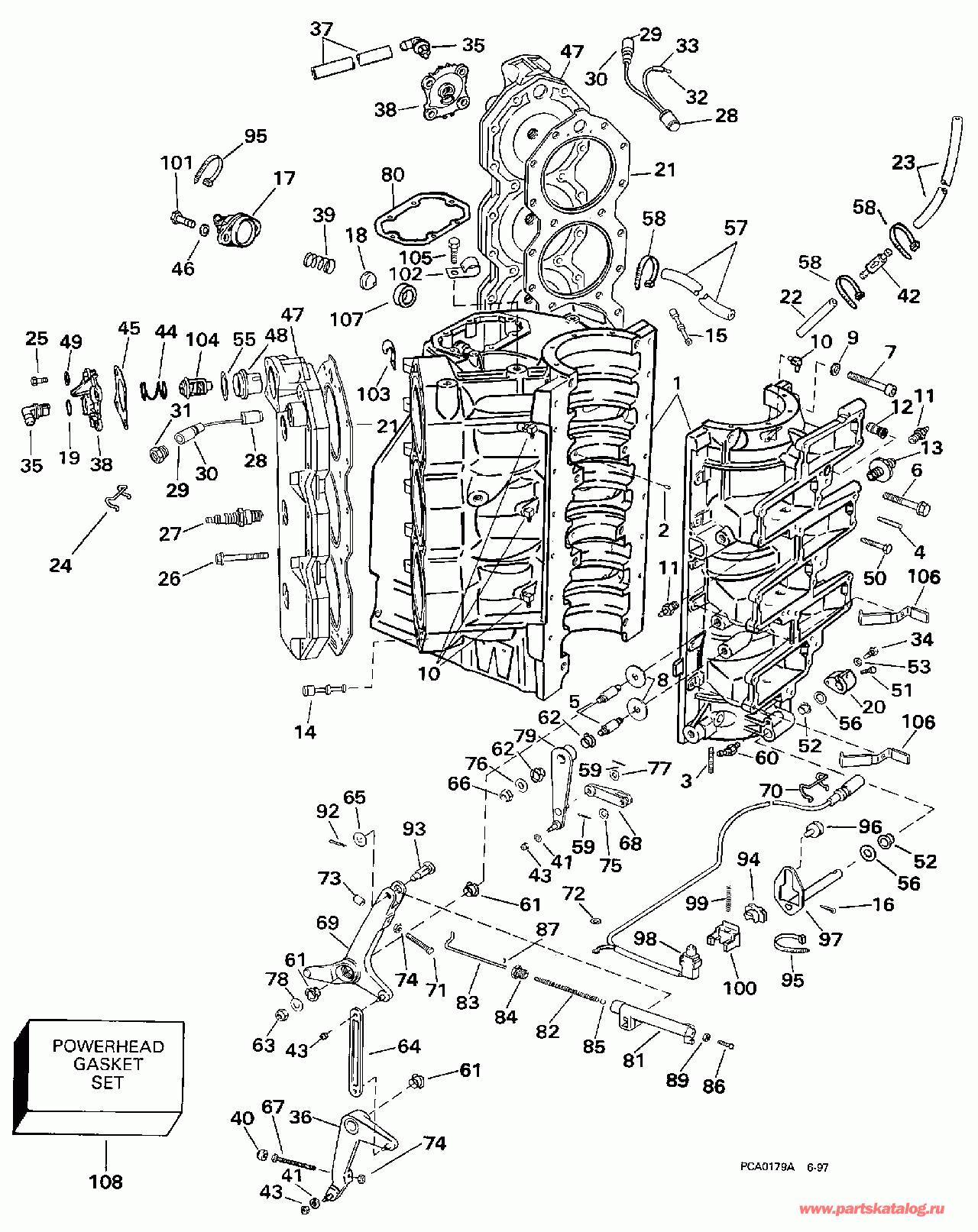 Лодочный подвесной мотор EVINRUDE E225TXECS 1998  - linder & Картер двигателя - linder & Crankcase
