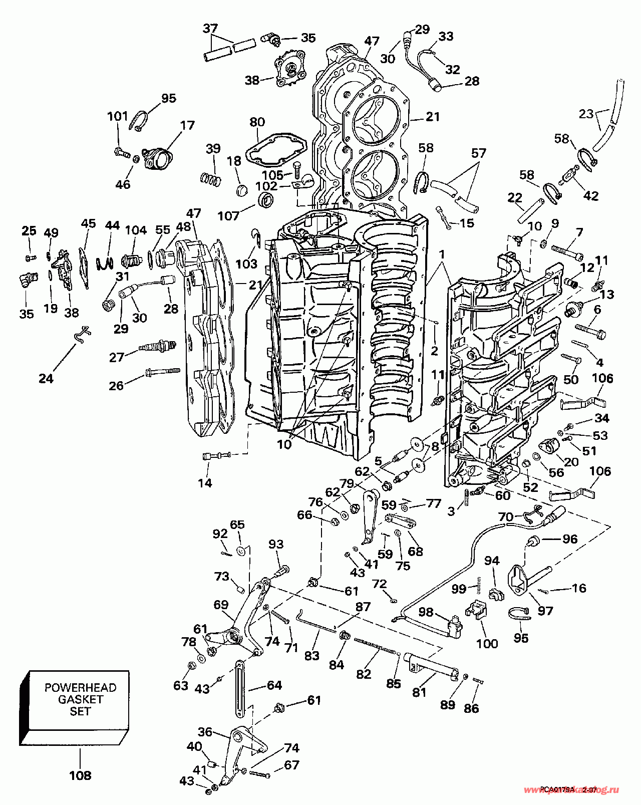 Лодочный мотор Evinrude E225CZEUD 1997  - linder & Crankcase