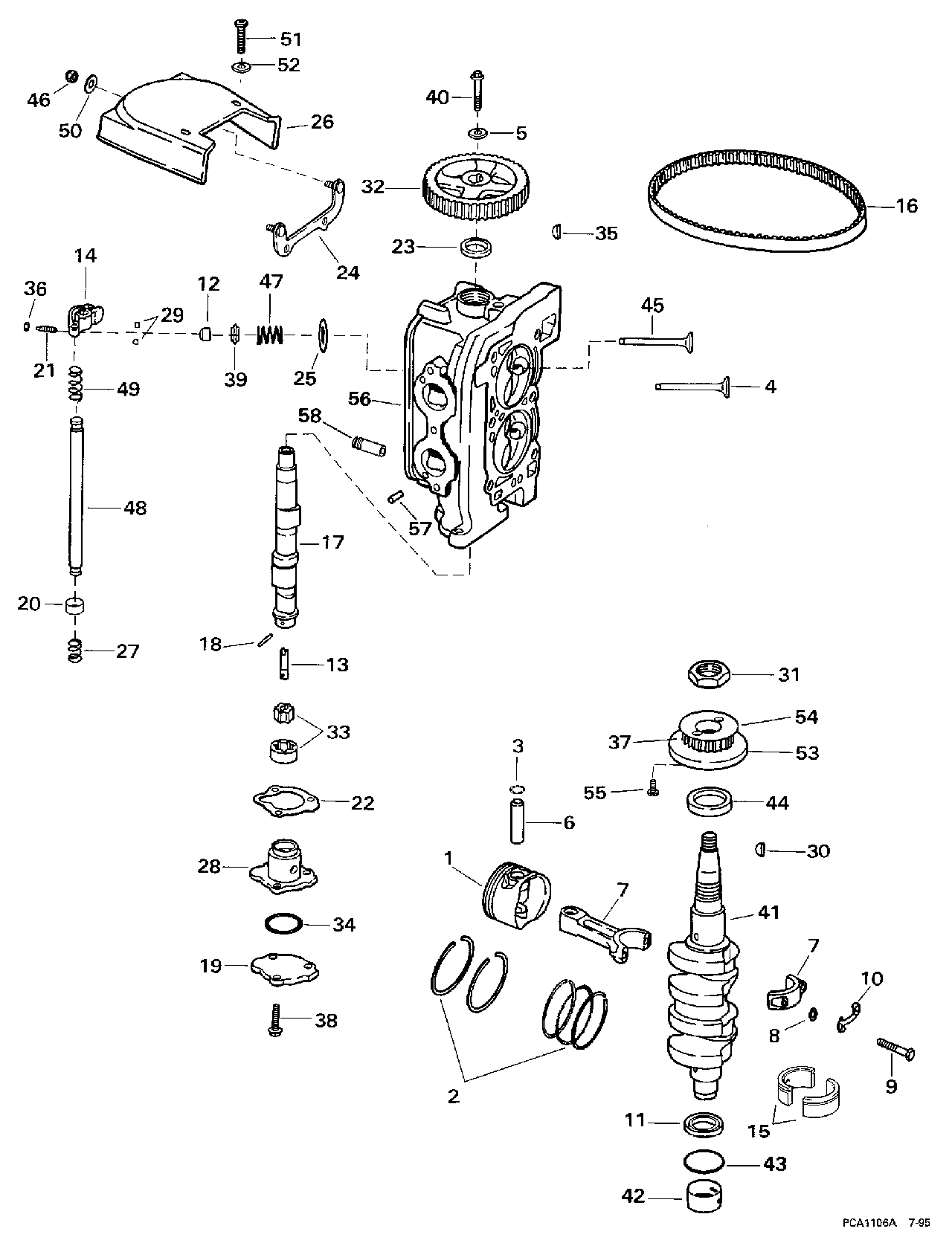 Лодочный подвесной мотор Эвинруд BE10FDLEUA 1997  - linder Head & Коленвал - linder Head & Crankshaft