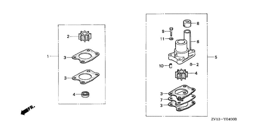 Модификация Вашего двигателя: Honda BF5A1 SC Вернуться к выбору узлов мотора Наборы для ремонта водяного насоса |