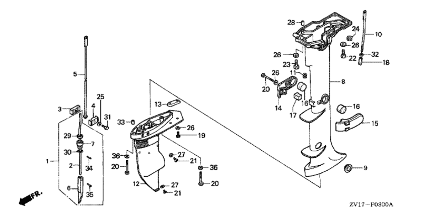 Модификация Вашего двигателя: Honda BF5A2 SD Вернуться к выбору узлов мотора Удлинение корпуса / Картер коробки передач |