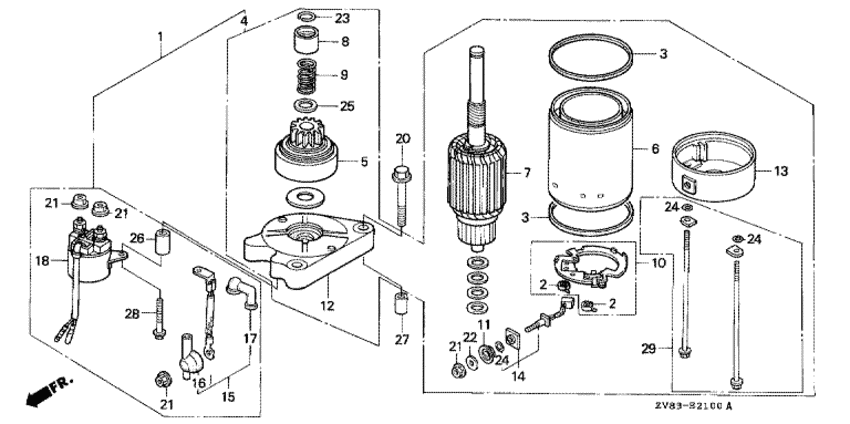 Модификация Вашего двигателя: Honda BF6D6 LU Вернуться к выбору узлов мотора Двигатель стартера |