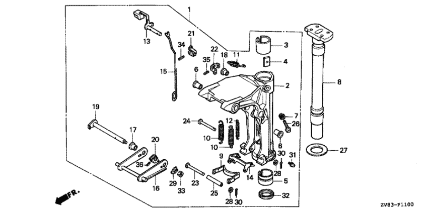 | 20 | 50526-ZV4-000 | Кронштейн вала наклона двигателя (Bracket, tilt shaft) | под заказ | 1320 руб. | |