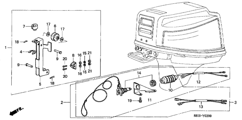 Модификация Вашего двигателя: Honda BF100B SD Вернуться к выбору узлов мотора Аварийный выключатель / Комплект для монтажа стартера |