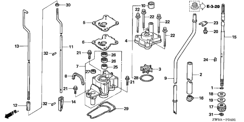 Модификация Вашего двигателя: Honda BF10D4 SHSK Вернуться к выбору узлов мотора Водяной насос / Вертикальный вал (ul size) |