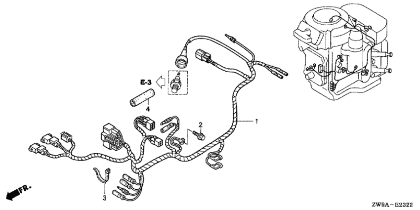Модификация Вашего двигателя: Honda BF10D4 SRU Вернуться к выбору узлов мотора Жгут проводов (3) |