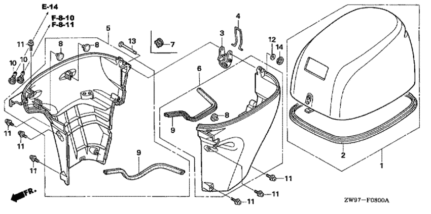 Модификация Вашего двигателя: Honda BF10D2 SRE Вернуться к выбору узлов мотора Крышка двигателя (капот) |