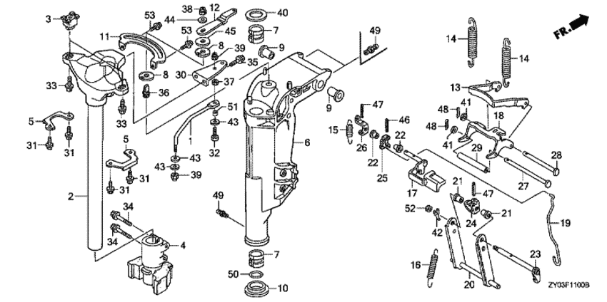 | 24 | 50526-ZV4-000 | Кронштейн вала наклона двигателя (Bracket, tilt shaft) | под заказ | 1320 руб. | |