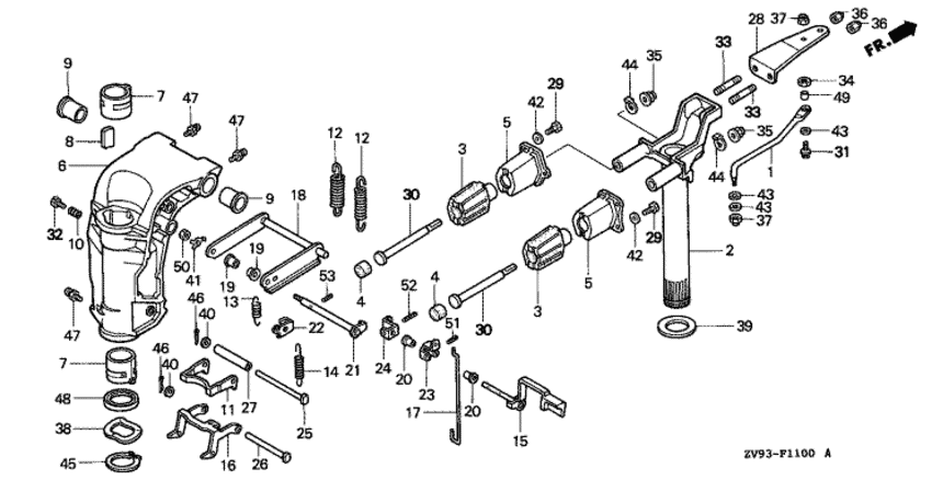 | 22 | 50526-ZV4-000 | Кронштейн вала наклона двигателя (Bracket, tilt shaft) | под заказ | 1320 руб. | |