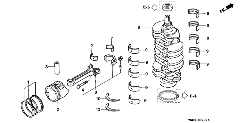| 8 | 13310-ZW1-L00 | Коленчатый вал, комплект (Crankshaft comp.) | под заказ | 208940 руб. | |