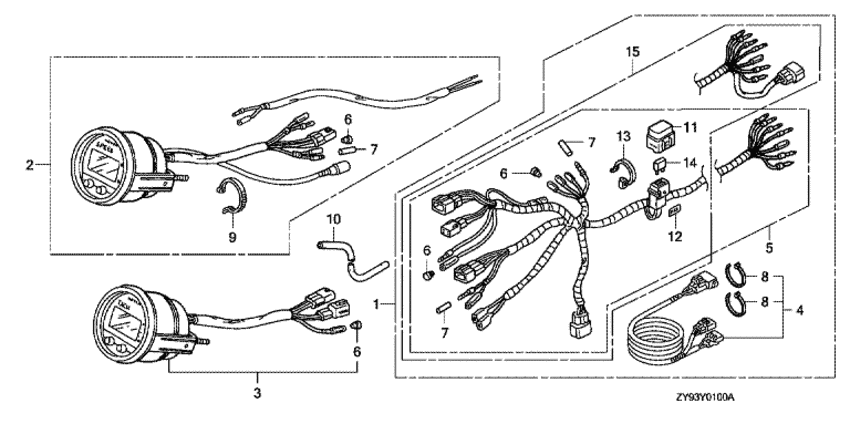 | 15 | 32540-ZZ3-740 | Жгут проводов для подключения приборов (a) (цифровые) (Harness assy., meter (a) (digital)) | под заказ | 29810 руб. | |